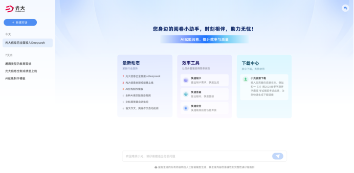 为落实《教育强国建设规划纲要(2024-2035年)》“人工智能+教育”战略部署,光大信息全面接入DeepSeek智能大模型,构建覆盖考试评估、课堂教学、自主学习等核心场景的AI解决方案,推动教育评价科学化、教学决策数据化、学习路径个性化。